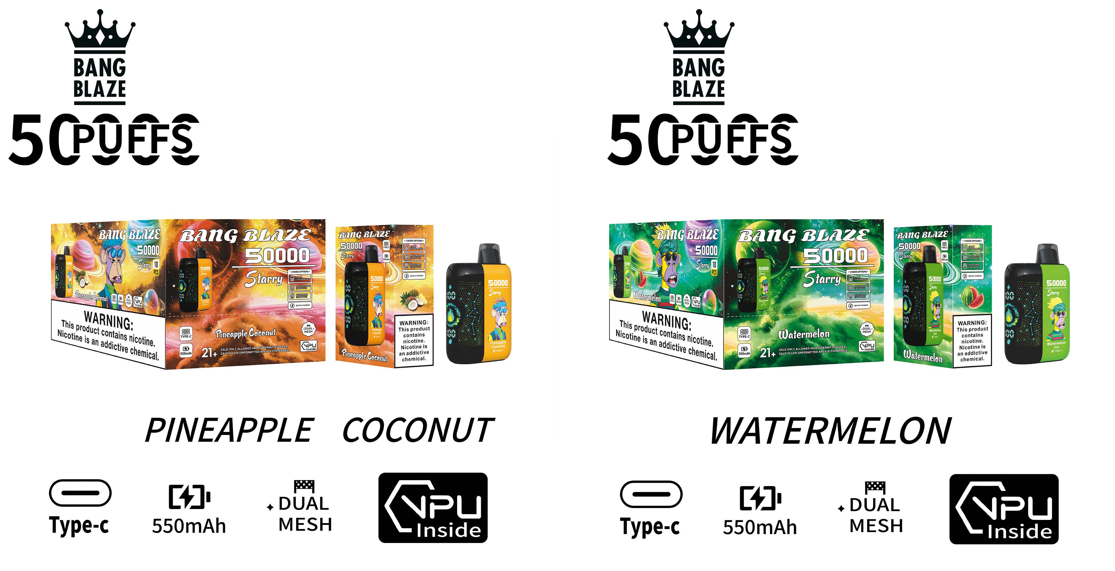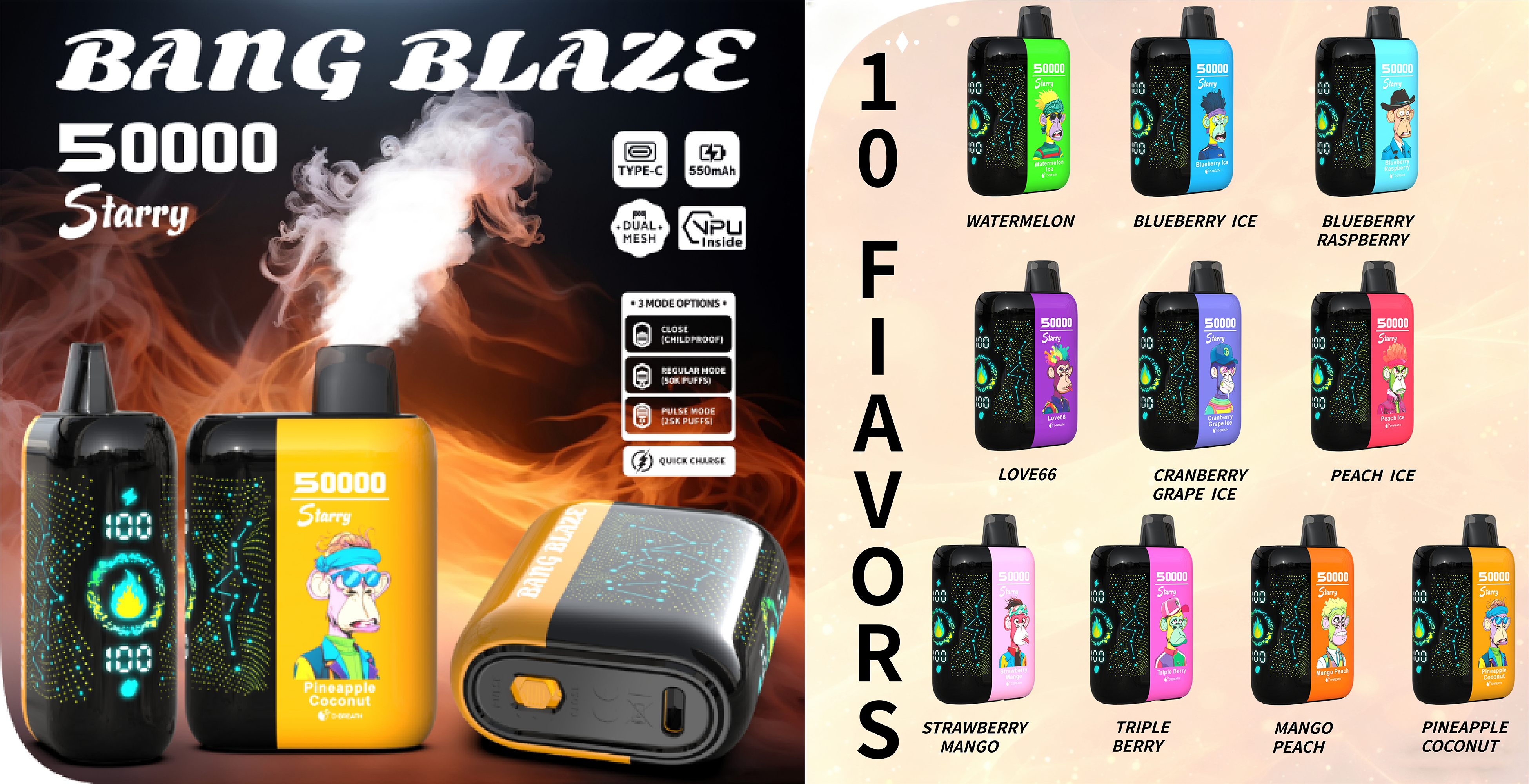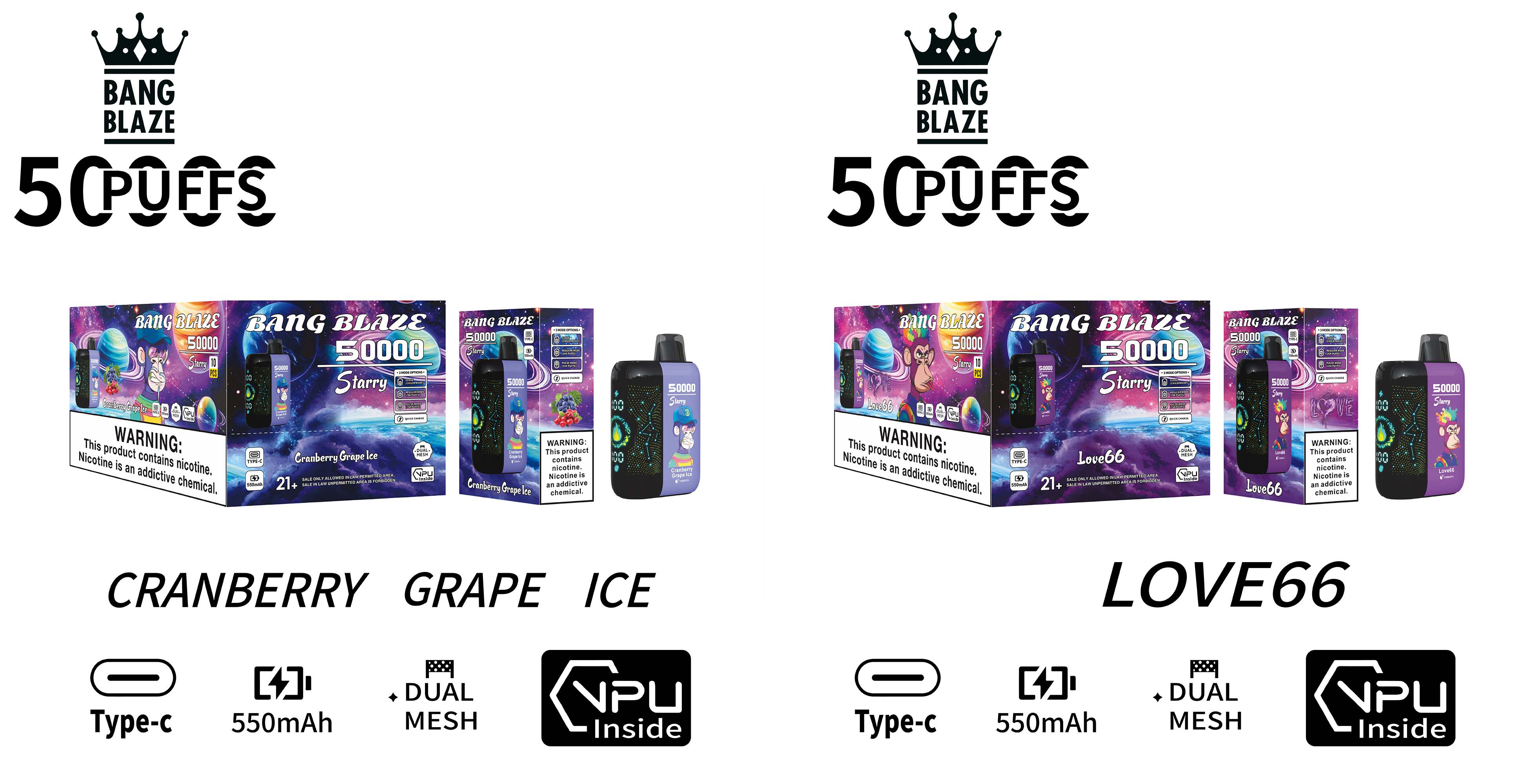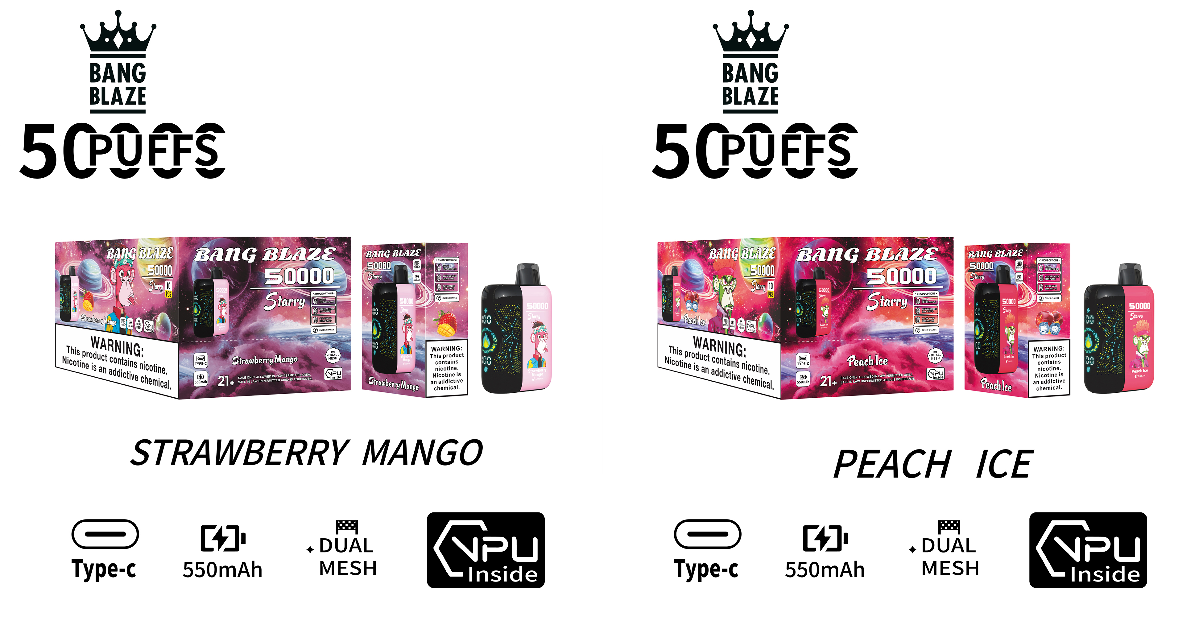 BANG 50000 Puffs 3D Starry Sky Curved Screen Disposable Vape – 25ML(Nic 2 %)